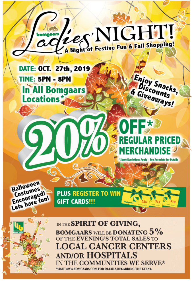 Bomgaars Ladies Night 2025 . Make plans to attend a night of festive fun and fall shopping! After investigating and going through lists of possible.